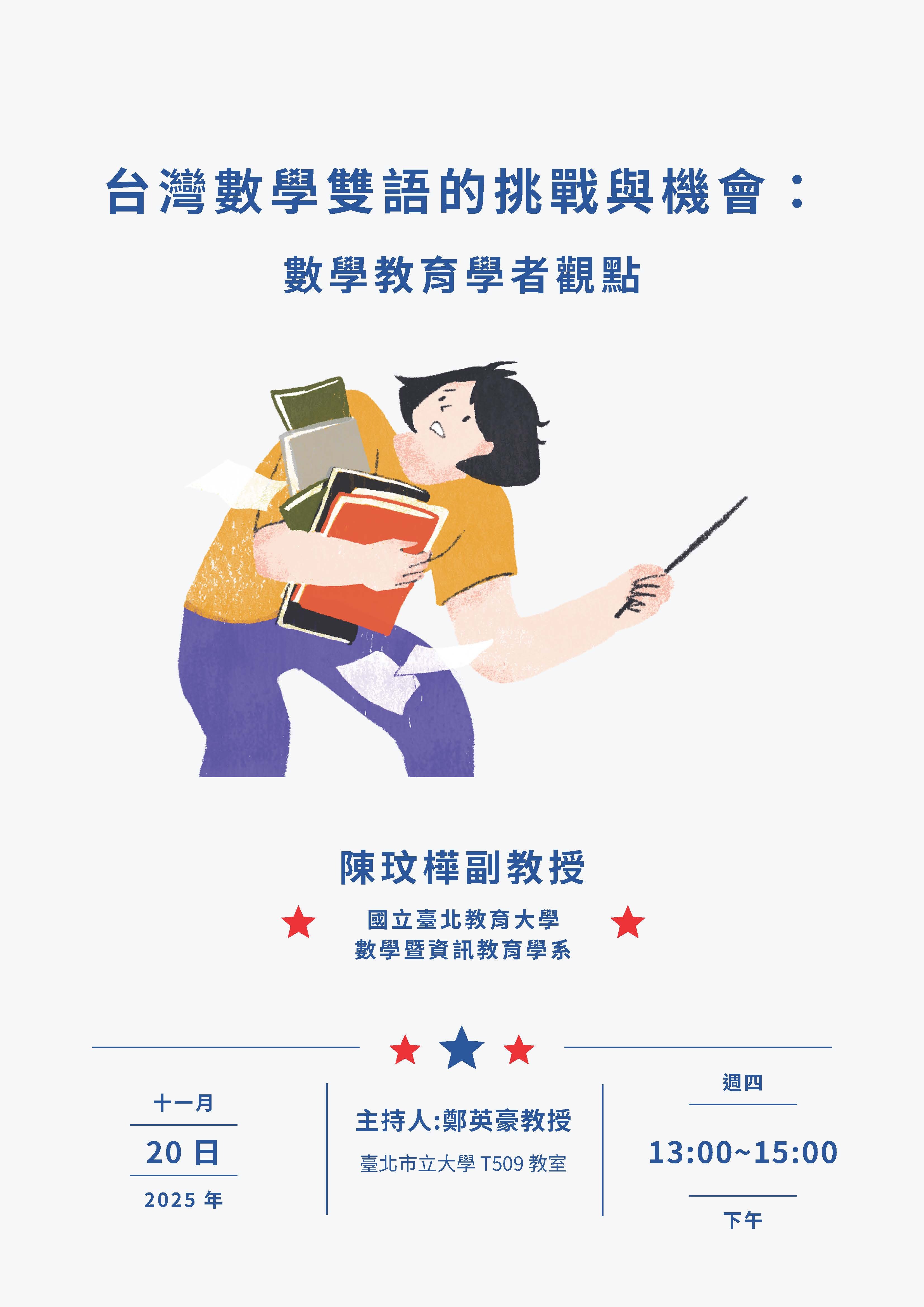 專題演講:114年11月20日(四)台灣數學雙語的挑戰與機會:數學教育學者觀點